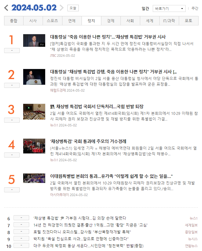 [최신뉴스] 네이트 뉴스 랭킹 2024.05.02